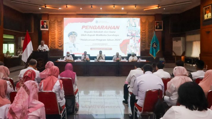 CB, Surabaya – Mengawali tahun 2024, Wali Kota Surabaya Eri Cahyadi memberikan pengarahan kepada segenap Koordinator Musyawarah Kerja Kepala Sekolah (MKKS), Kelompok Kerja Kepala