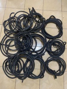 Adapun barang bukti yang diamankan petugas berupa kabel-kabel NYY Inlet Outlet Gardu, serta gergaji besi dan tang pemotong kawat.