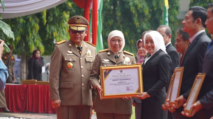 CB, Kabupaten Mojokerto – Bupati Mojokerto Ikfina Fahmawati Meraih Penghargaan Sebagai Pembina Keselamatan Dan Kesehatan Kerja (K3) Terbaik VII Di Tingkat Provinsi Jawa Timur