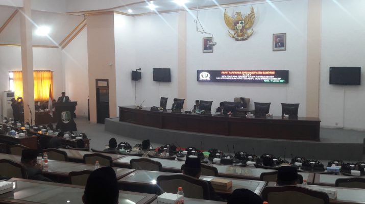 CB, SAMPANG – Dewan Perwakilan Rakyat Daerah (DPRD) Kabupaten Sampang, menggelar rapat paripurna dengan agenda nota penjelasan terhadap 1 (satu) Raperda Inisiatif dan nota penjelasan Bupati terhadap 2 (dua) Raperda Eksekutif di ruang graha paripurna DPRD Kabupaten Sampang, pada Rabu (18/02/24).