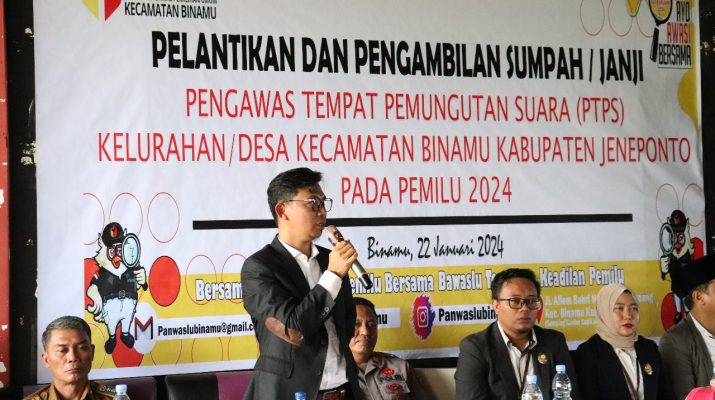 CB, Jeneponto – Sebanyak 1.097 Pengawas TPS (PTPS) se Kabupaten Jeneponto dilantik dan diambil sumpah jabatannya, pelantikan tersebut dilaksanakan serentak di 11 Kecamatan sewilayah