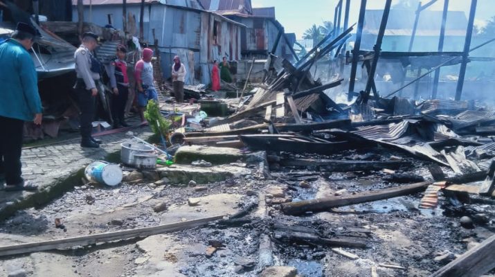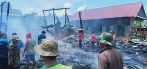Dari hasil pantauan di TKP nampak terlihat petugas Damkar, warga sekitar serta dari pihak kepolisian dan TNI berusaha membantu memadamkan kobaran api yang begitu ganas yang membuat 2 unit rumah panggung rata dengan tanah