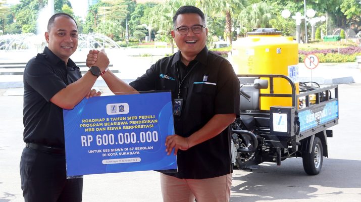 “Salah satu program TJSL ini kita serahkan ke Pemkot Surabaya dan diterima secara simbolis oleh Pak Wali Kota. Kami ucapkan terima kasih kepada Pak Wali Kota Surabaya, mau berkenan menerima bantuan program TJSL dari SIER berupa motor roda tiga dan beasiswa senilai Rp600 juta,” kata Didik.