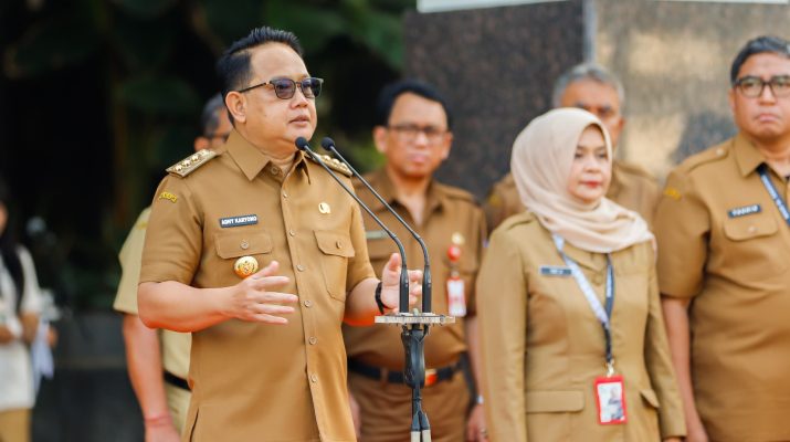 CB, SURABAYA – Penjabat Gubernur Jawa Timur Adhy Karyono memimpin apel ASN di lingkungan Sekretariat Daerah, Bappeda, BPKAD, DPMPTSP, dan Sekretariat DPRD di Halaman Kantor Sekretariat Daerah Prov. Jatim Jl. Pahlawan 110 Surabaya, Selasa (20/2).