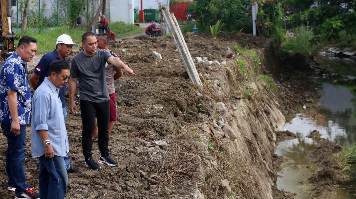 CB, Surabaya – Wali Kota Surabaya Eri Cahyadi kembali melakukan peninjauan pengerjaan tanggul dan pengerukan sungai di Jalan Tengger Raya, Sambikerep, Jumat (23/2/2024). Pengerjaan tanggul dan pengerukan sungai dilakukan guna mencegah terjadinya banjir di kawasan tersebut. Saat ini, pembangunan tanggul sudah mencapai 80 persen dan ditargetkan selesai dalam dua minggu.