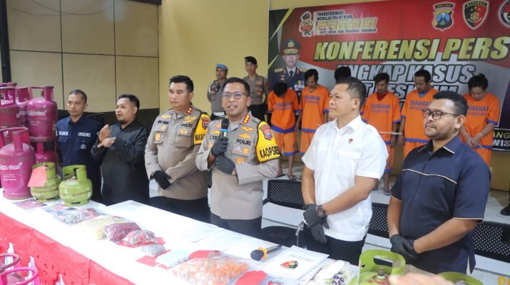 Cb Sidoarjo. Satreskrim Polresta Sidoarjo berhasil mengungkap dua kasus penyalahgunaan niaga, berupa pengoplosan LPG 3 Kg subsidi pemerintah ke dalam tabung LPG 12 Kg non subsidi. Kasus pertama lokasinya di Sukorejo, Buduran lalu kedua di Sidodadi, Candi.