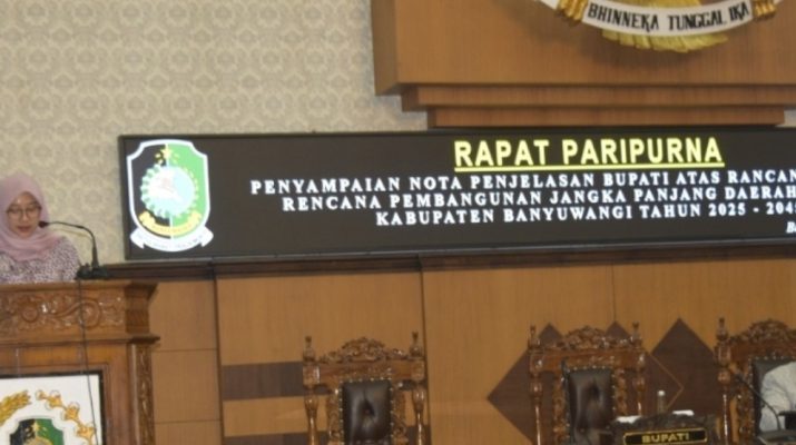 Dewan Perwakilan Rakyat Daerah (DPRD) Kabupaten Banyuwangi menggelar rapat paripurna dengan agenda penyampaian nota pengantar Rancangan awal ( Ranwal) Rencana Pembangunan Jangka Panjang Daerah