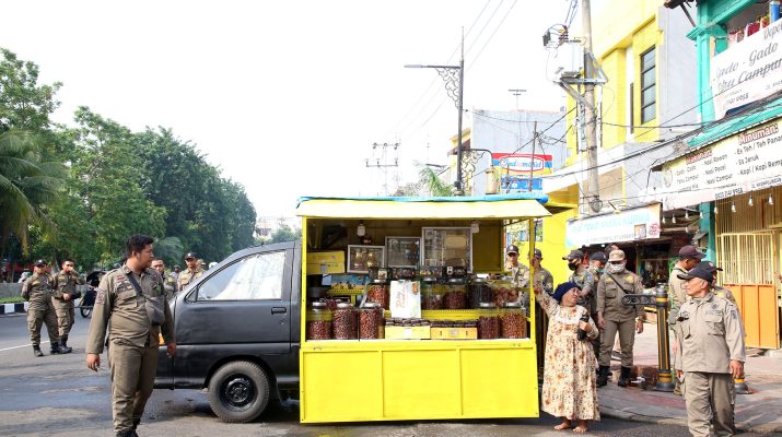 CB, Surabaya – Satpol PP Kota Surabaya melakukan penyegelan persil pada bangunan yang digunakan sebagai lahan bongkar muat sayur, di Jalan Pandegiling no 137