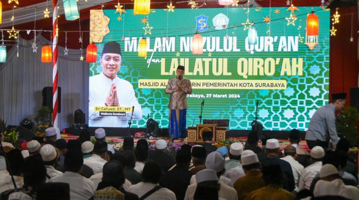 CB, Surabaya – Pemerintah Kota (Pemkot) Surabaya menggelar acara Malam Nuzulul Quran dan Lailatul Qiro’ah di Masjid Al-Muhajirin komplek Gedung Pemkot Surabaya, Rabu (27/3/2024)