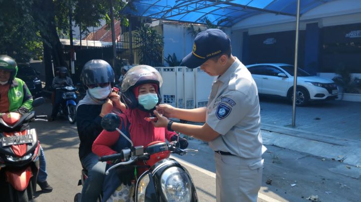 Surabaya, Cahaya Baru. 08 Mei 2024 – PT Jasa Raharja Perwakilan Surabaya melalui Penanggung Jawab Bidang Pelayanan Denny Prayudha dan Staf Samsat Surabaya Utara Almadinda Violita S bersama tim Pembina Samsat Surabaya Utara yaitu Bapenda dan POLRI menggelar aksi simpatik dengan memberikan snack dan souvenir berupa gantungan kunci yang bertuliskan pesan keselamatan berlalu lintas kepada pengguna jalan yang melintas di Jalan Raya Kaca Piring Ketabang Surabaya.