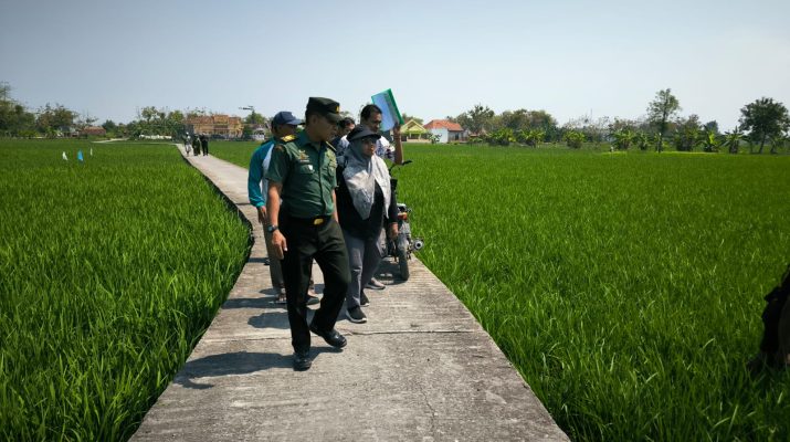 CB, Lamongan,- Pasi Log Kodim 0812/Lamongan, Kapten Inf Ali Mahmud bersama pihak Ditjen Tanaman Pangan Kementan RI, Enie Tauruslina Amrullah meninjau langsung pompanisasi brigade