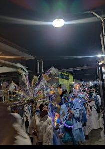 Dengan alunan musik sholawat ,warga mengelilingi kampung terbit dan lancar tanpa mengganggu warga kampung yang lainnya.selesai acara kirab dilanjutkan penampilan Hadrah dan terakhir tausiyah dari H.Rohmat .
