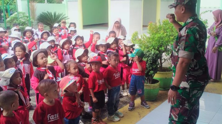 CB, Lamongan, -Guna memberikan edukasi tentang pengenalan lingkungan teritorial khususnya TNI-AD yang berada di wilayah teritorial jajaran kodim 0812 Lamongan kususnya Koramil jajaran Kodim 0812 Lamongan pada siswa siswi di usia dini, para dewan Guru seperti TK Lestari dari desa Mungli Kec Kalitengah mengajak anak didiknya berkunjung dalam kegiatan Outing Class yang merupakan kunjungan wisata guna menunjang pengetahuan dan pengenalan anak melalui pembelajaran diluar kelas dengan mendatangi beberapa destinasi yang telah ditentukan, seperti yang terlihat saat kunjungan di Makoramil 0812/21 Kalitengah jajaran Kodim 0812 Lamongan, Selasa (24/02/2025).