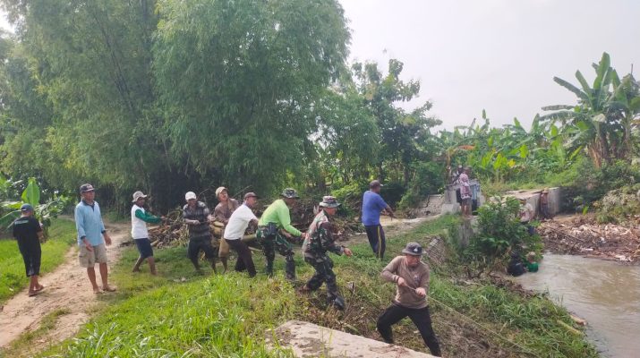 TNI-Polri di Kecamatan Turi Bersama Masyarakat Kerja Bakti Pembersihan Sungai