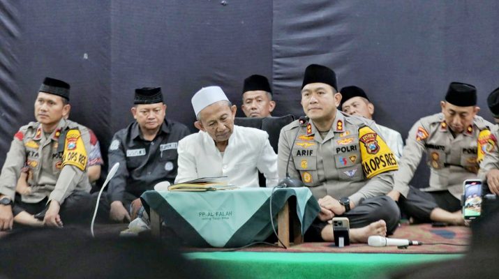 CB Blitar – Kapolres Blitar, AKBP Arif Fazlurrahman mengadakan silaturahmi dan buka puasa bersama dengan para santri di Pondok Pesantren Al Falah, Desa jeblog,