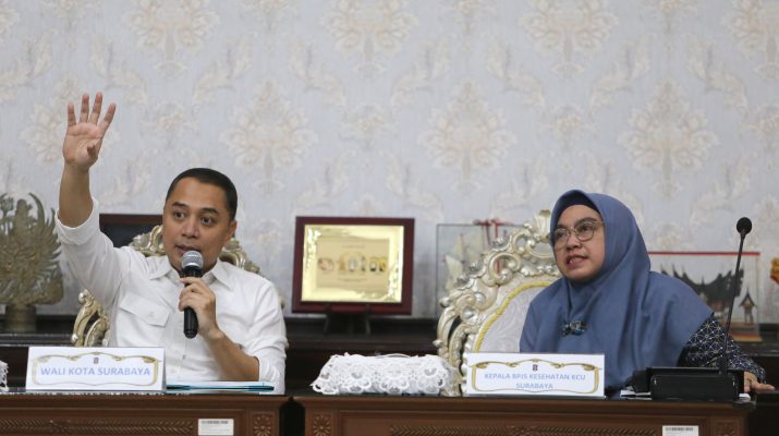 CB, Surabaya – Wali Kota Surabaya Eri Cahyadi menggelar pertemuan dengan Perhimpunan Rumah Sakit Seluruh Indonesia (PERSI) dan BPJS Kesehatan di Balai Kota, Selasa,