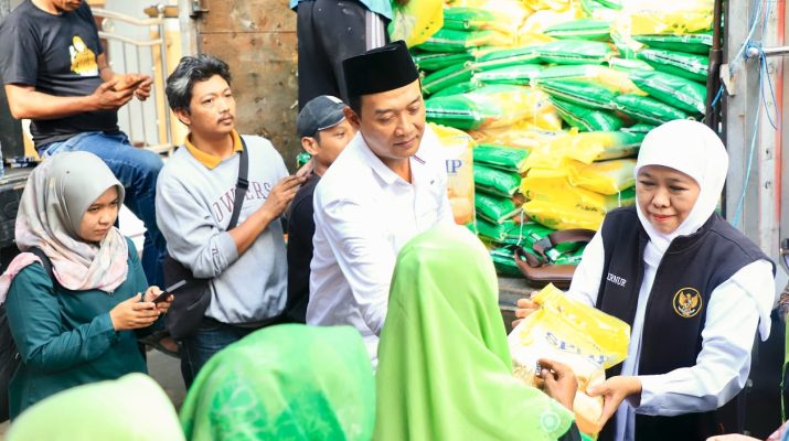 Juga bagikan bantuan sembako dan zakat untuk masyarakat sekitar SURABAYA – Gubernur Jawa Timur, Khofifah Indar Parawansa meninjau Pasar Pangan Murah Ramadhan di kawasan