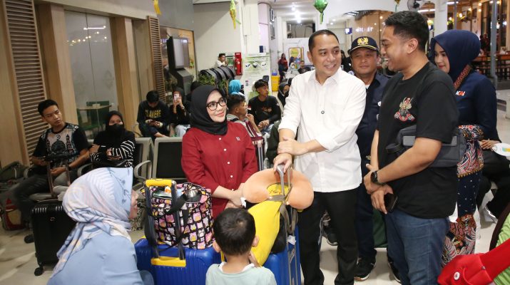 CB, Surabaya – Wali Kota Surabaya Eri Cahyadi menggelar inspeksi mendadak (sidak) puncak arus mudik transportasi kereta api di Stasiun Surabaya Gubeng, Jumat, (28/3/2025)
