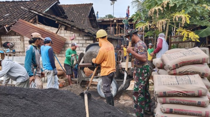 CB, Lamongan, – Dengan penuh semangat gotong royong dan suasana keakraban, anggota Koramil 0812/23 Solokuro bersama warga masyarakat dusun Palirangan Desa Payaman Kec Solokuro