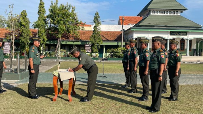CB, Lamongan,- Dandim 0812 Lamongan, Letkol Arm Ketut Wira Purbawan S.I.P., M.Han, memimpin acara serah terima jabatan perwira staf dan pelepasan anggota pindah satuan