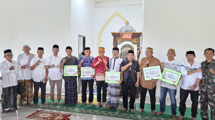 Sebagai bentuk dukungan nyata, Bupati menyerahkan bantuan hibah kepada lima masjid yang tersebar di Kecamatan Bangkala Barat, yaitu: