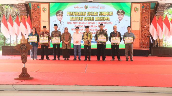CB, Mojokerto -Bupati Mojokerto Muhammad Al Barraa, menyalurkan bantuan hibah berupa beasiswa bagi masyarakat miskin yang berprestasi, dengan nominal total 390 juta rupiah. Melalui