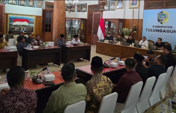 CB, Tulungagung – Pemerintah Kabupaten (Pemkab) Tulungagung bersama Forum Koordinasi Pimpinan Daerah (Forkopimda) menggelar Rapat Koordinasi (Rakor) di Pendopo Kongas Arum Kusumaning Bongso pada Minggu (31/8/2025). Rakor ini digelar sebagai bentuk respons atas maraknya aksi demonstrasi di berbagai daerah yang berujung kericuhan, tindakan anarkis, hingga penjarahan.