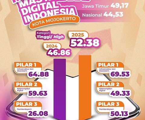 CB, Kota Mojokerto – Kota Mojokerto mencatat capaian membanggakan dalam perkembangan masyarakat digital. Berdasarkan data Kementerian Komunikasi dan Informatika RI, Indeks Masyarakat Digital Indonesia