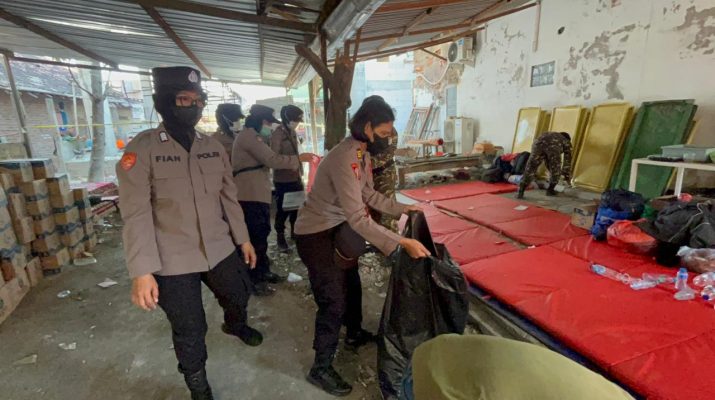 Polwan Polresta Sidoarjo Peduli Kebersihan di Posko Keluarga Korban Santri Ponpes Al Khoziny