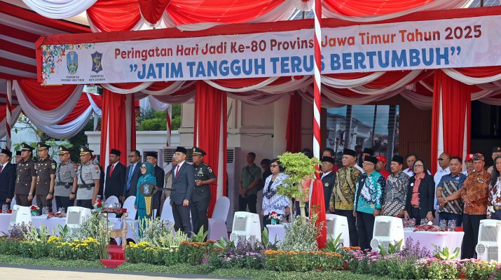 Cb Sidoarjo. Gubernur Jawa Timur Khofifah Indar Parawansa, dalam upacara peringatan Hari Jadi Ke-80 Provinsi Jawa Timur di Gedung Negara Grahadi Surabaya, sempat membahas