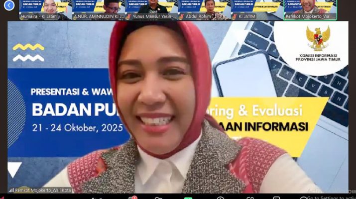 Melalui sambungan daring bersama jajaran Komisioner KI Jawa Timur pada Kamis (23/10), wali kota yang akrab disapa Ning Ita memaparkan berbagai upaya dan inovasi yang dilakukan Pemerintah Kota Mojokerto dalam mendorong keterbukaan informasi publik.