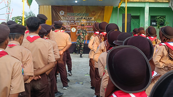 Babinsa Koramil 0812/03 Turi Berikan Pelatihan Baris Berbaris kepada Siswa SMK Nusantara dalam Kegiatan Perkemahan Akhir Tahun