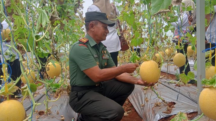 CB, Lamongan – Komandan Koramil (Danramil) 0812/18 Brondong, Lettu Cba M. Amin, menghadiri kegiatan panen raya melon hasil program Pertanian Produktif Greenhouse yang dikelola