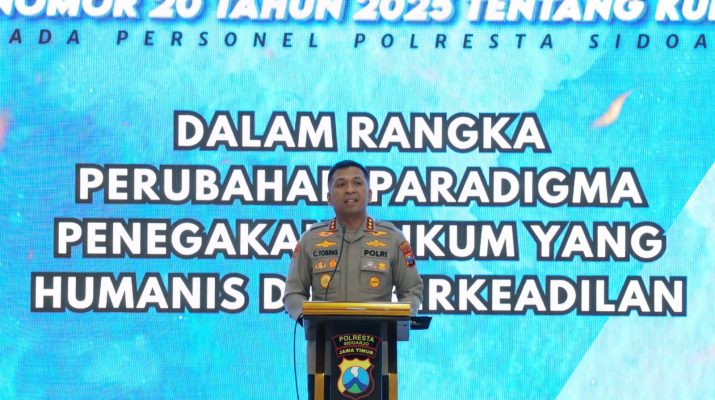Kegiatan ini dilaksanakan sebagai bagian dari upaya perubahan paradigma penegakan hukum menuju pendekatan yang lebih humanis dan berkeadilan. Sosialisasi diikuti oleh seluruh anggota Polresta Sidoarjo serta perwakilan dari Polsek jajaran.