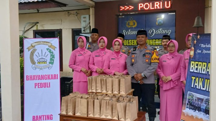 Cb Sidoarjo. Ramadhan berbagi kepedulian, Polsek Balongbendo melalui Polresta Sidoarjo bersama Bhayangkari Ranting Balongbendo menggelar kegiatan pembagian takjil kepada masyarakat dan pengguna jalan, Jumat