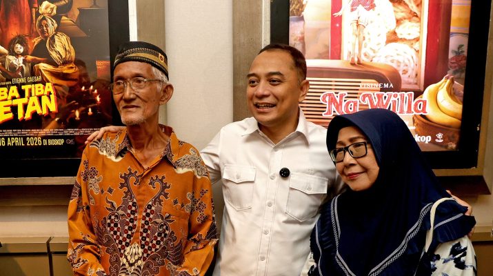 CB, Surabaya – Wali Kota Surabaya Eri Cahyadi bersama sejumlah Kepala Perangkat Daerah (PD) di lingkungan Pemerintah Kota (Pemkot) nonton bareng (nobar) film “Na Willa” di mal Tunjungan Plaza pada, Sabtu (18/4/2026). Saat nobar, Wali Kota Eri turut ditemani tokoh-tokoh dan warga yang diceritakan di dalam film tersebut.