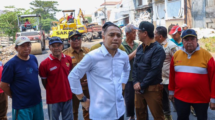 CB, Surabaya – Wali Kota Surabaya Eri Cahyadi melakukan inspeksi mendadak (sidak) proyek pengaspalan jalan di kawasan Kali Tebu, Jalan Dukuh Bulak Banteng, Kelurahan Sidotopo Wetan, Kecamatan Kenjeran, Selasa (21/4/2026). Dalam sidak kali ini, ia ingin kawasan tersebut tertata rapi dan bersih dari sampah.