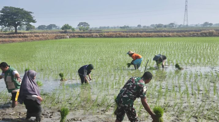 CB, Lamongan,– Dalam upaya mendukung program pemerintah dalam meningkatkan swasembada pangan, Babinsa Koramil 0812/25 Sarirejo, Sertu Suwito, terjun langsung ke lapangan mendampingi para petani melaksanakan penanaman padi di Dusun Panggung, Desa Simbatan, Kecamatan Sarirejo, Sabtu (25/04/2026).