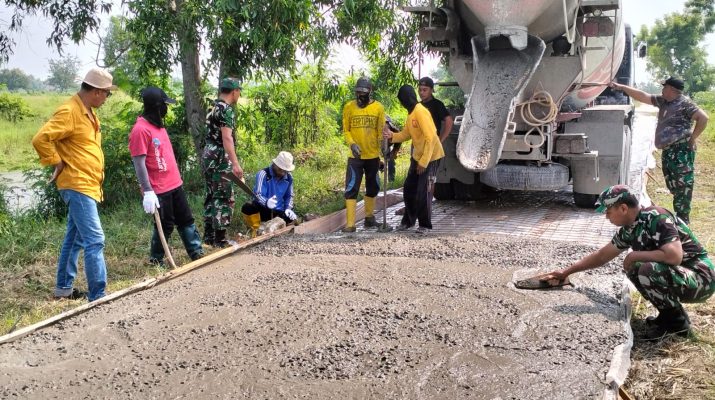 Share this on WhatsAppCB, Lamongan, – Babinsa Koramil 0812/25 Sarirejo membantu warga dalam melakukan pengerjaan cor jalan penghubung yang berada di Dusun Njogo Desa